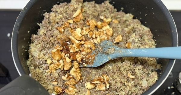 İnce bulguru, cevizi, baharatı ekleyip karıştırın.