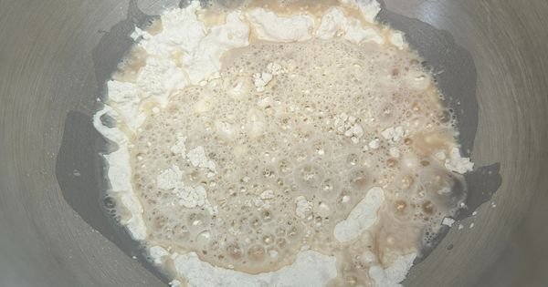 1. Napoli pizza için 600 ml suyu geniş bir yoğurma kabına alın ve 1 gram mayayı su içinde parmak uçlarınızla eritin. Üzerine 1 kg unun bir kısmını ekleyip karıştırın, ardından kalan unu ilave edin.