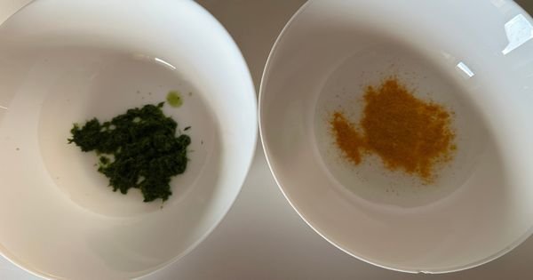 Sarı katman için 1 silme tatlı kaşığı zerdeçalı ayrı bir karıştırma kabına alın.