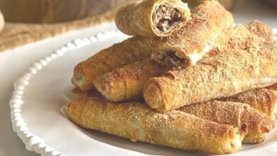 6. Her birini tezgahta yuvarlak şekilde açıp labne peynirini sıkın ve yarım ay şeklinde kapatın.